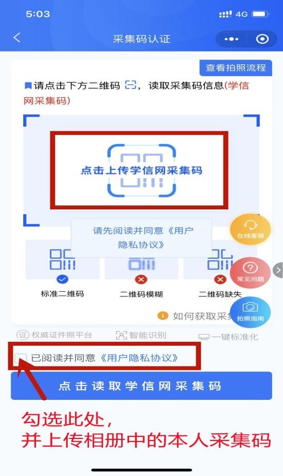 3. 点击“已下载采集码,点击进入图像采集”,通过采集码绑定本人学籍信息。