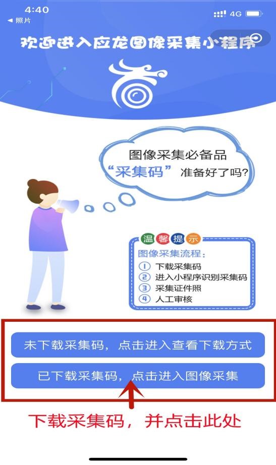 一、采集方式为员工线上通过小程序“应龙图像采集”进行采集;