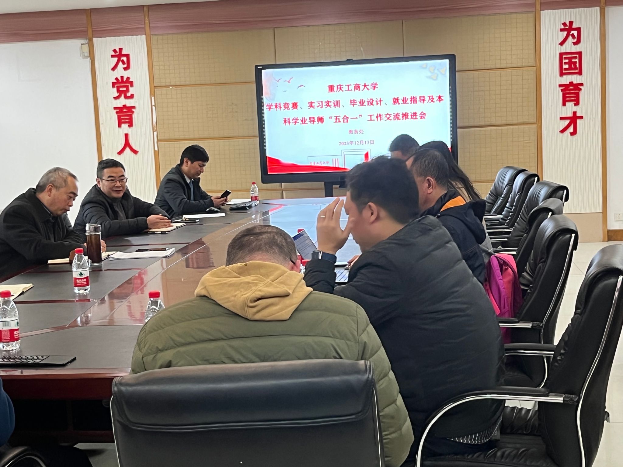 为进一步推进学科竞赛、实习实训、毕业设计、就业指导及本科学业导师“五合一”工作的全面开展,2023年12月13日上午,公司在厚德楼1018召开了“五合一”工作交流推进会,教务处骆东奇处长、胡卫军副处长,各公司教学副经理参加了会议。会议由胡卫军主持。