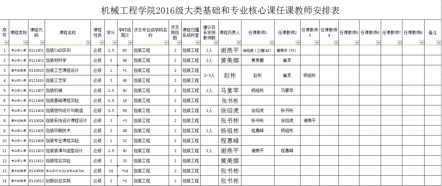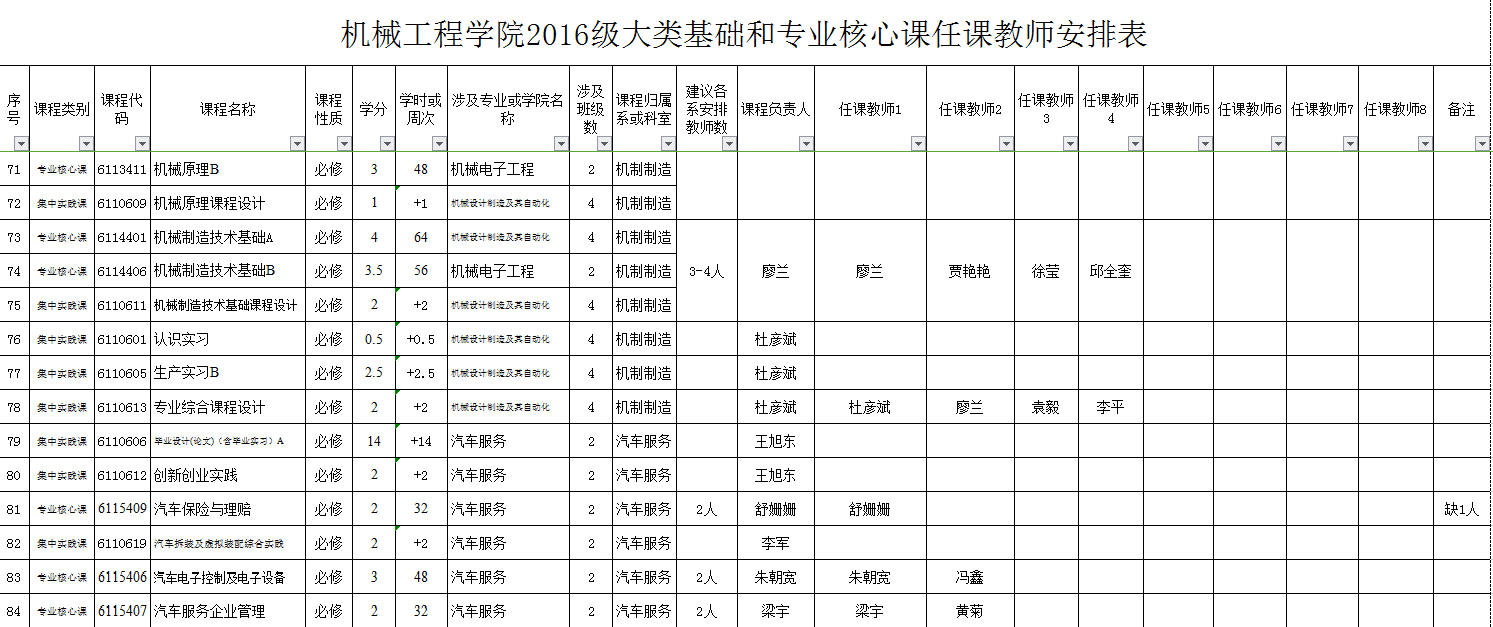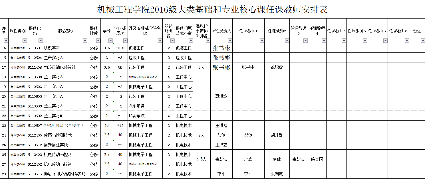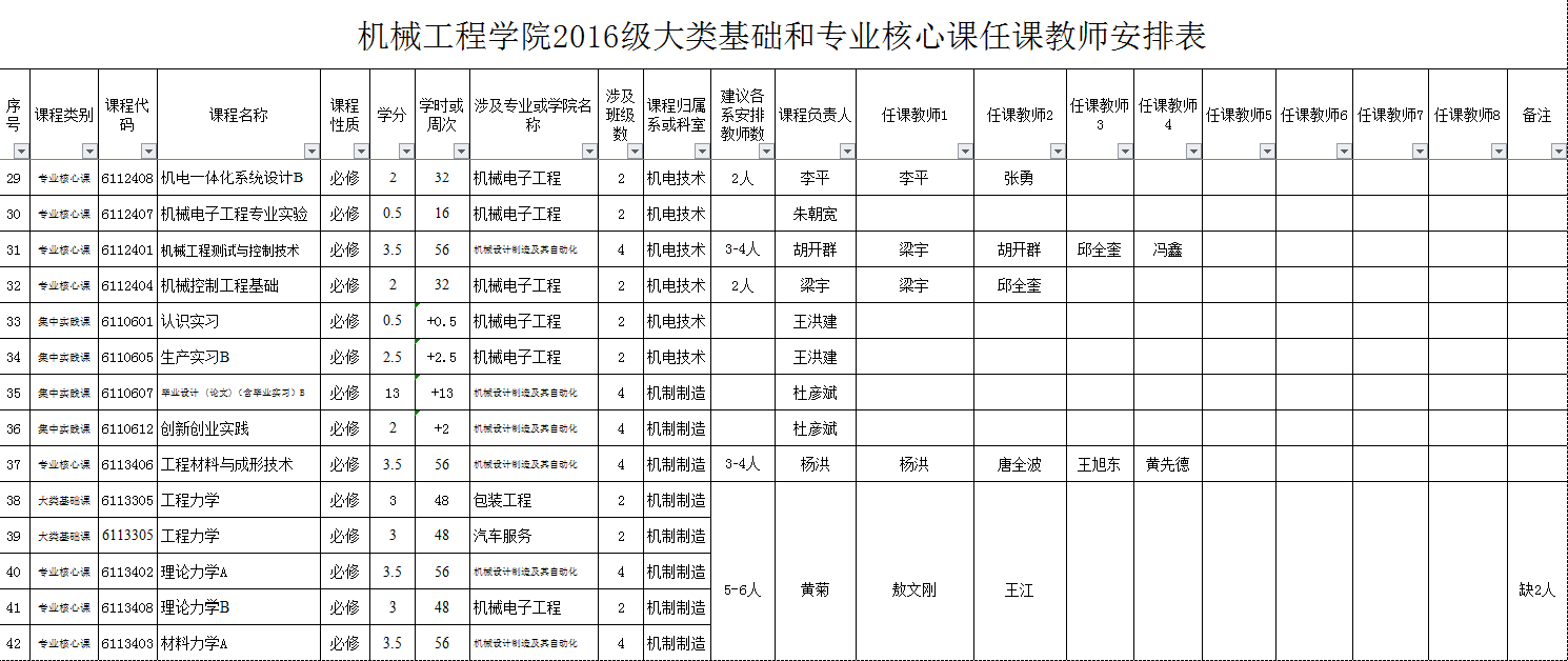 附件:2016级课程任课教师安排表