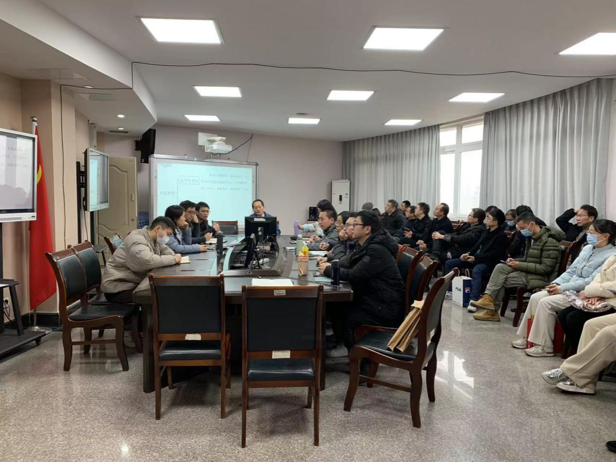 为了迎接审核评估工作,进一步加强考试环节规范管理,2024年1月16日下午,公司在慧智楼90708公司会议室召开公司教师集体备课会。经理杜力主持,副经理李平,各系主任和40余位教师参加了本次集体备课会