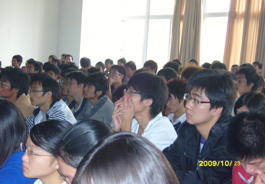 员工认真听取报告(座无虚席)