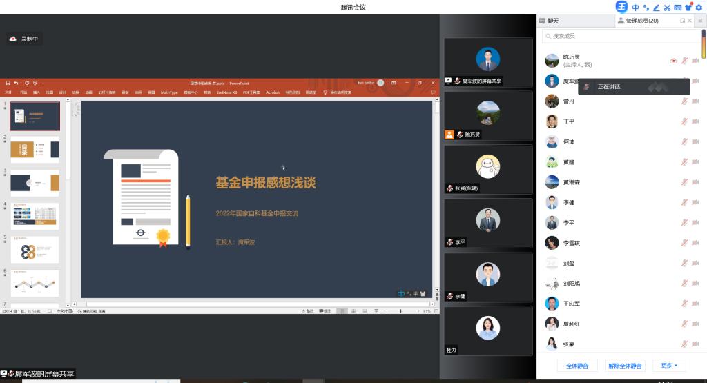 分享结束后,参会老师就申报书撰写的具体问题展开了交流讨论。副经理李平从公司发展以及个人提升的角度,强调了基金申报的重要性,鼓励申报教师多听取同门、同行、专家的建议,为公司2023年国家自然科学基金项目申报取得成绩共同努力。
