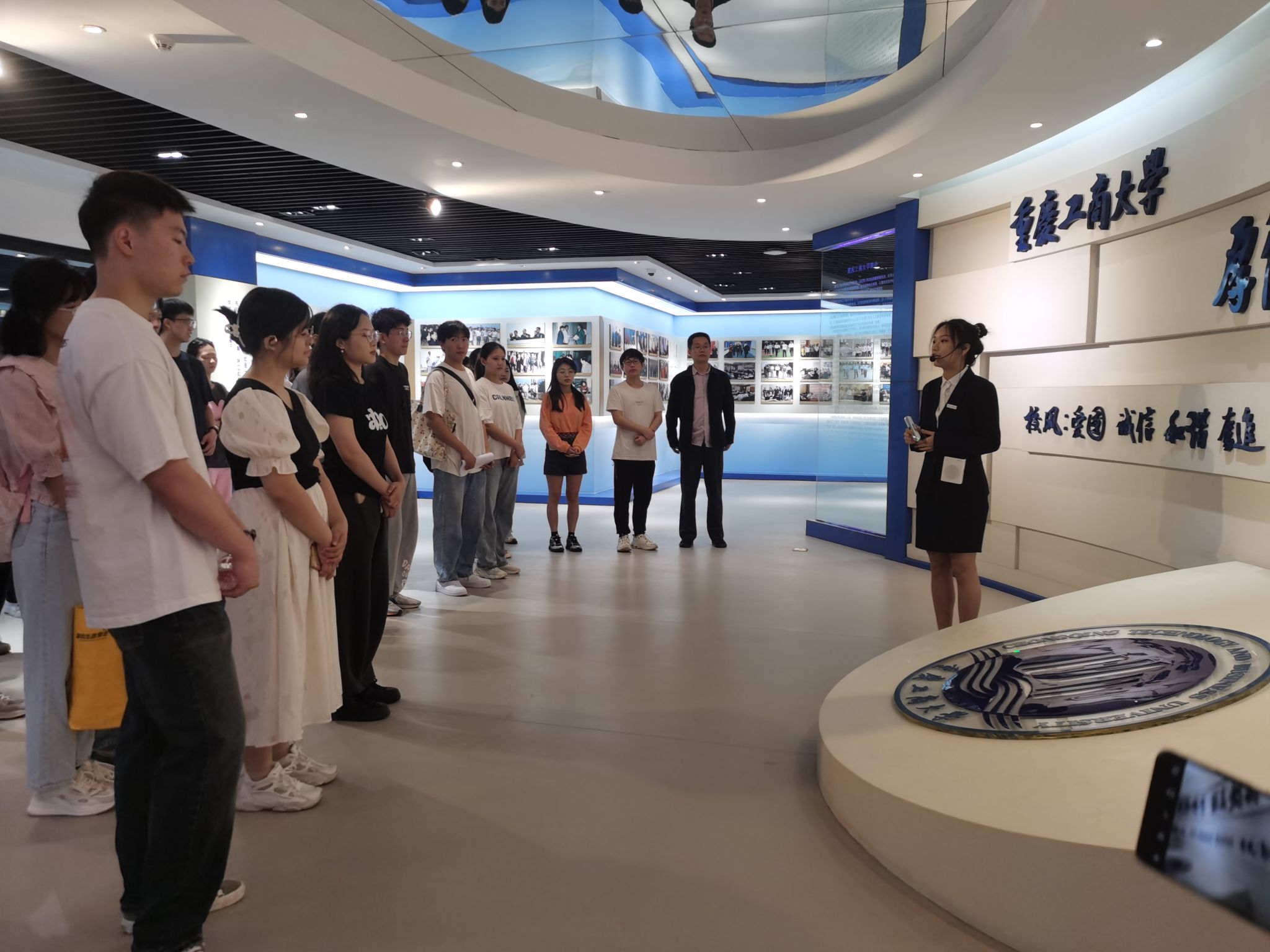 正值校庆日,参与活动人员首先来到校史馆,通过参观一幅幅照片、一件件展品,一个个奖杯,毕业生们再次重温办学历史、名师风采、员工故事。公司党委副书记陈春洁同志结合校史、员工故事,勉励毕业生党员要心怀“国之大者”,清正廉洁从业,脚踏实地奋斗。毕业生党员表示深受感染,更加坚定了“今天我以母校为荣,明天母校以我为荣”的信心和决心。
