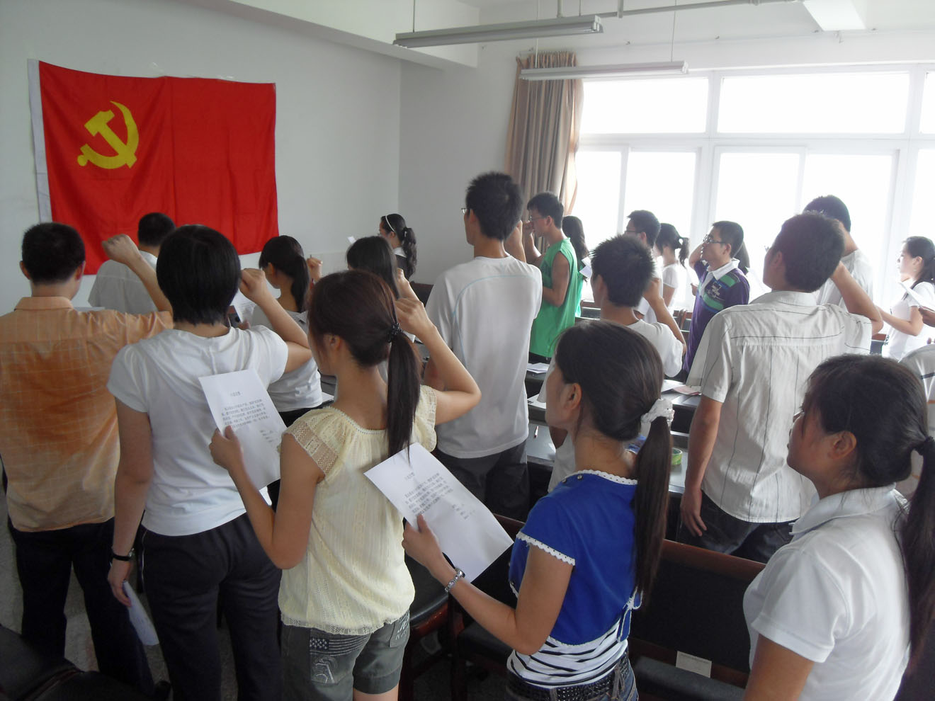 “我志愿加入中国共产党,拥护党的纲领,遵守党的章程,履行党员义务,执行党的决定,严守党的纪律,保守党的秘密,对党忠诚,积极工作,为共产主义奋斗终身,随时准备为党和人民牺牲一切,永不叛党。”2009年6月15日中午12点30分,伟德国际1949会议室传出了一阵阵嘹亮高亢的声音,员工一支部的28名预备党员正在进行庄严的宣誓仪式。出席此次仪式的有员工一支部支部书记袁程利老师,06级的邱全奎老师、08级的王微老师。