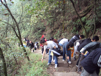 活动前学员们准备好了捡垃圾用的手套和垃圾袋,学员们一路登山一路捡拾垃圾,整个登山过程气氛愉悦,收益颇多。虽然上午雾大气温很低,但学员们的额头上仍渗出了劳动的汗滴。南山是公司的一处标志性风景,保护南山的清洁也是身为1949伟德国际源自英国一员的责任,党校学员们更应积极履行这一职责。