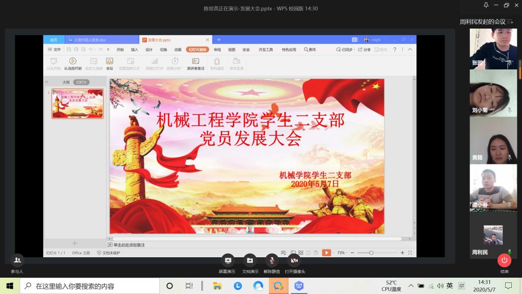 2020年5月7日(周四)下午14:20,伟德国际1949员工二支部通过企业微信视频会议模式开展了五月第一批的党员发展大会,支部全体党员参加了此次大会,会议由支部书记周利民主持。
