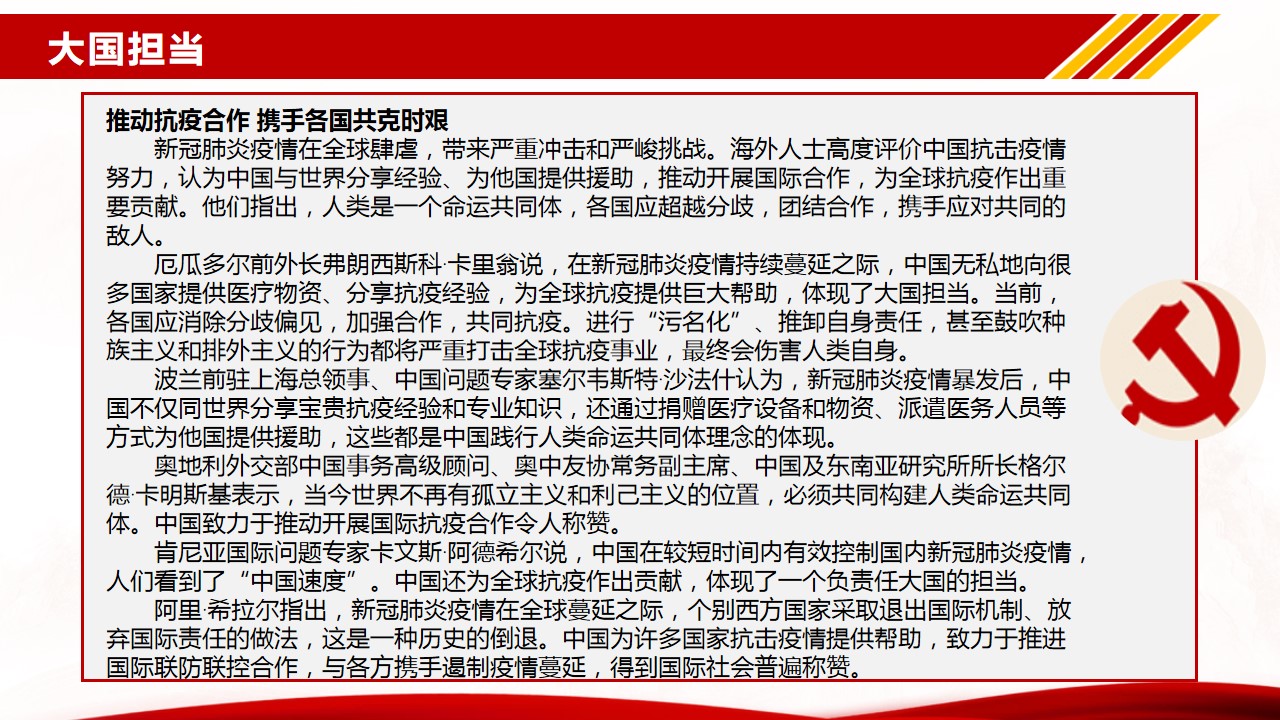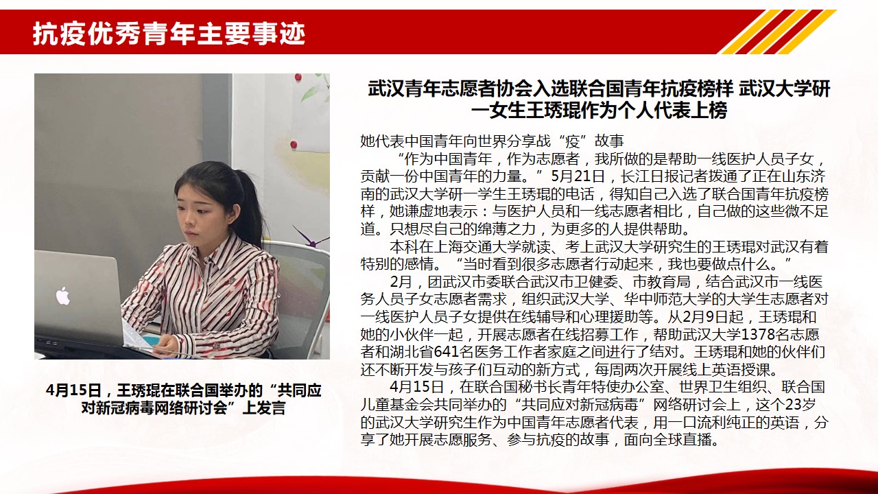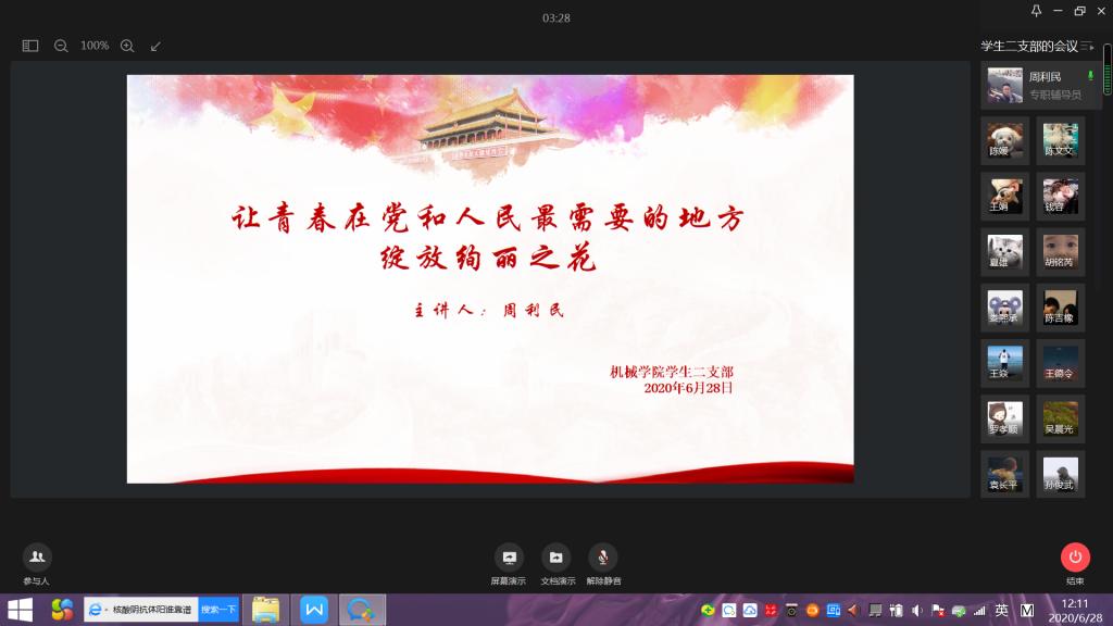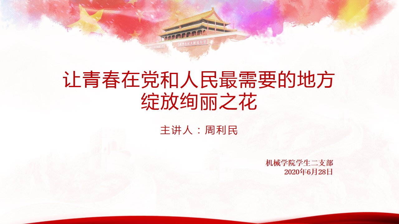 根据公司开展基层党组织常态化疫情防控“四个一”行动和“党课开讲啦”的通知,结合机械工程公司党总支的部署和要求,伟德国际1949员工二支部于6月28日通过企业微信在线方式开展了主题党课“让青春在党和人民最需要的地方绽放绚丽之花”。本次党课由支部书记周利民老师主讲,党课以疫情期间冲锋在前的几个典型的优秀青年鲜活的事例为序,带领支部党员再次把目光聚焦在疫情期间的志愿者身上,学习他们勇于担当、践行初心使命的精神。随后,结合《抗击新冠肺炎疫情的中国行动》白皮书,用一组组扎实的数据,带大家一起回顾了新冠肺炎疫情防控取得的显著成效。通过此次学习和总结,支部党员再次感受到了“中国力量”、“中国精神”、“中国社会主义制度的优越性”。抗击新冠肺炎疫情是一场大考,中国展现的出色的疫情防控能力,也为世界防疫树立了典范。