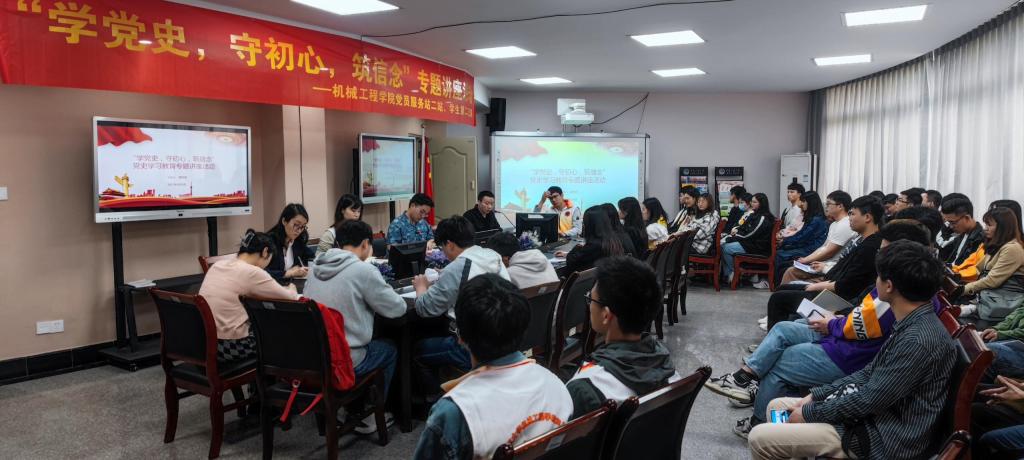 习近平总书记在党史学习教育动员大会上明确指出:在“两个一百年”奋斗目标历史交汇的关键节点,在全党集中开展党史学习教育,正当其时,十分必要。为引导公司员工大力发扬红色传统、传承红色基因,赓续共产党人精神血脉,4月28日中午,机械工程公司党员服务站二站联合员工第二党支部在慧智楼90708开展党史学习教育专题学习会。员工第二党支部支部书记、党员服务站二站指导老师周利民,员工第二党支部支委委员,党员服务站二站和员工第二党支部等共计57人参与本次学习。学习会由党员谭小春主持。