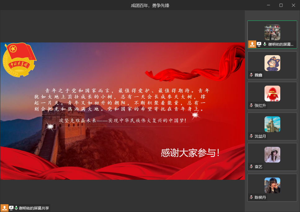 5月20日晚上7点,伟德国际1949员工党服工作站携手员工党支部,采用线上观影交流学习的方式,学习习近平总书记在庆祝中国共产主义青年团成立100周年大会上的重要讲话精神。公司陈春洁副书记带领与会入党积极分子和师生党员话心得、谈感想,切实让习总书记重要讲话精神入脑、入心。本次活动机械工程公司党服工作站130余名同学参加了会议。
