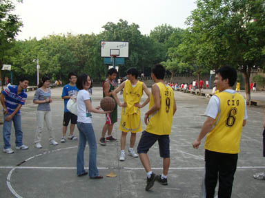 5月5日下午,“红五月3+2”系列活动正式启动了,首先是以一场别开生面,精彩纷呈的篮球赛拉开序幕。辅导员王微老师来到篮球场为我们呐喊助威。