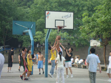 伴随着一记响亮的口哨声,站在中场的王老师敏捷的把球抛向空中。于是,这次特殊的篮球赛正式打响了。全班同学共分为A队和B队,大家不管是高手还是新手,不论是男同学还是女同学,都积极的参与进来。各队的同学团结协作,密切配合,将篮球赛进行得如火如荼。只见会打的同学驰骋球场,积极拼抢,然后将球传至内线那些不会打或是女同学手中,由他们完成投篮得分这一光荣的时刻。每当打完一次这样的完美配合后,场下都会爆发出一阵阵热烈的掌声,整个篮球赛欢乐的气氛也一次次被推向高潮。