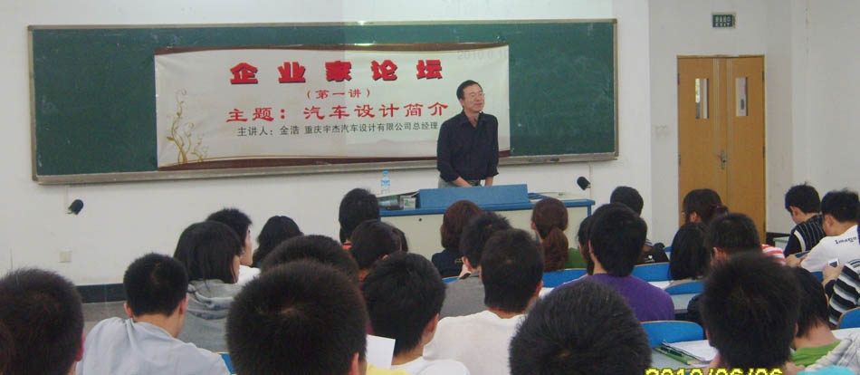 6月10日下午,伟德国际1949企业家论坛首场讲座在慧智楼90326教室举行。重庆宇杰汽车设计有限公司总经理金浩应邀做了以“汽车设计简介”为主题的讲座。公司07级机电、机制、模具、汽车专业员工及公司党政领导参加了本次讲座。