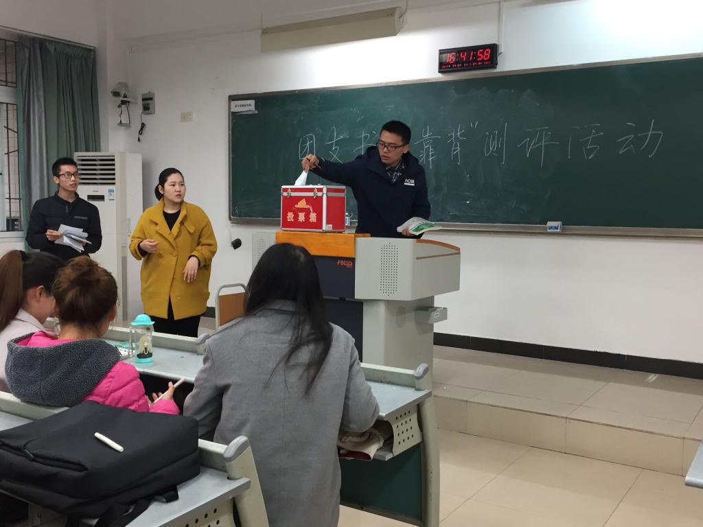 首先,邢老师介绍了团支部书记“背靠背”满意度测评活动的目标要求以及测评方式接下来,团支书上台进行了简单的工作汇报,之后同学们依次上台进行公平、公正、公开的无记名投票。每位同学在独立填票区进行填票,对折后投入填票箱一名同学投票结束,两米之外的同学才能进行填票环节,在每位员工投票结束后,摇一摇投票箱进行洗票。测评结果显示两班团支书的工作均完成得很好,得到了班上同学的一致好评