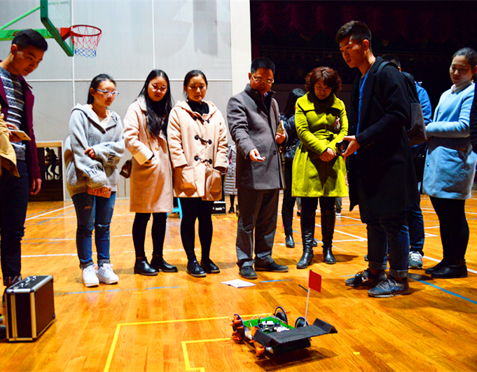 比赛分为A、B两组进行:A组为创意组。同学们的创意无限,有的同学对军事比较感兴趣,做出伪装型的小车;有的同学对工业比较感兴趣,做出了搬运的小车,有同学技术精湛做出能够自动绕开障碍物的小车。B组是固定任务组:将小车在轨道上行驶,让其在终点处停留两秒,同学们都拿出自己心爱的宝贝,让它们在赛道上尽情的奔驰。比赛结束后杨焕宇员工答疑解惑,为同学解答在制作过程中所遇到的问题!