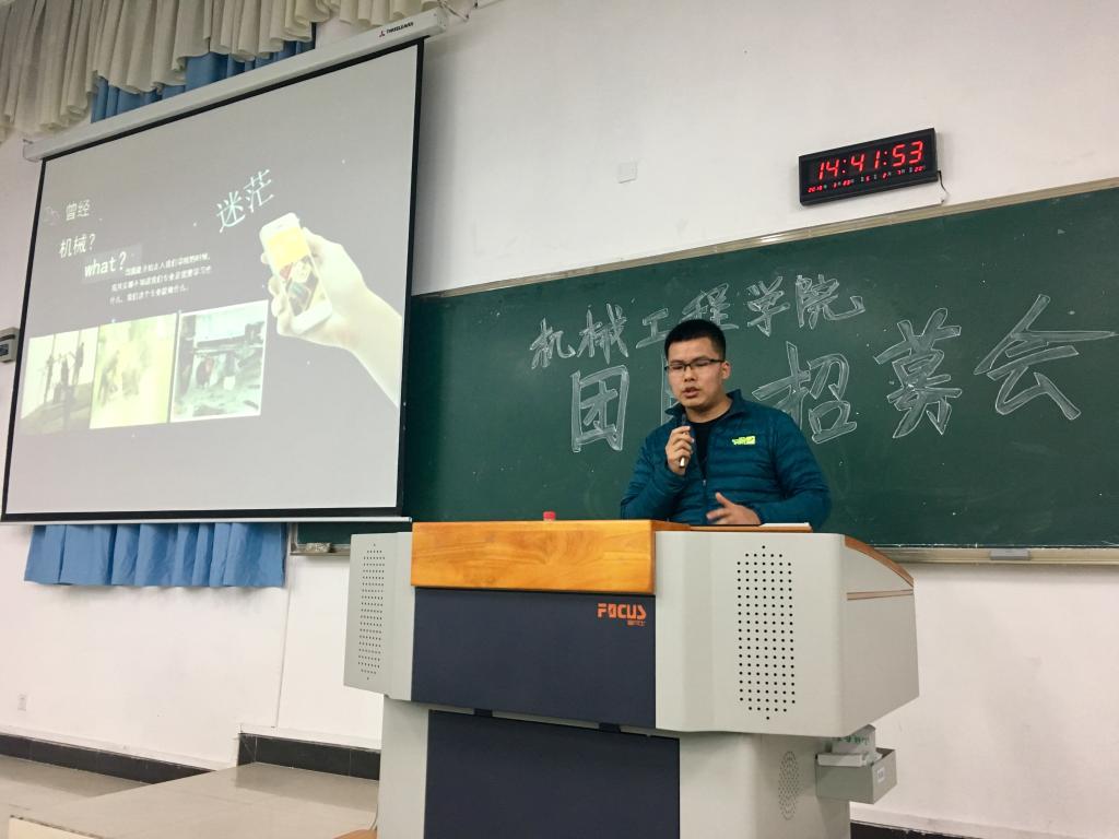 值得一提的是,第一代“机械师”成员,2013级机制一班的罗冲同学作为特别嘉宾出席了本次招募会,并分享了自己大学四年在“机械师”团队中的成长历程与收获。罗冲同学以一个毕业生的角度分析了目前机械行业的良好发展,鼓励同学们要对自己所学专业充满信心,并以自己的就业和考研经历告诉同学们,只有将专业情怀和爱国情操融入到平时的学习中,才能以更强的责任心去对待老员工活和工作,并取得良好的成绩。罗冲同学今年以第一名的成绩考入了四川大学航天航空科学与工程公司研究生,他表示,四年的员工科创团队经历和学科竞赛参赛经历对他的就业和考研都提供了莫大的帮助。