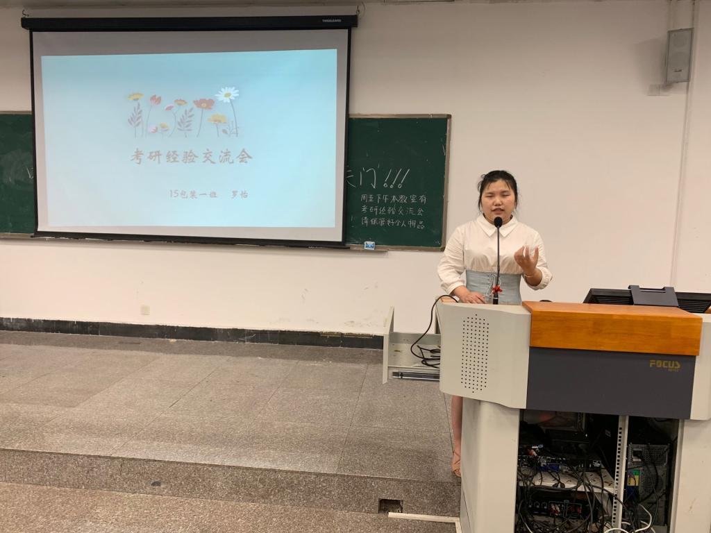 2015级包装专业的罗怡同学根据自己的亲身经历跟大家分享了自己调剂到广西大学包装与印刷工程专业的备考心得,她表示,同学们在备考的时候要有两手准备,要根据自身的实力评估,选择适合自己的公司和专业。她特别强调,同学们一定要高度重视学科竞赛和专业实践,这些经历会为考研面试和研究生阶段的学习提供很大的帮助。最后,她建议同学们合理规划好备考时间,认真挑选备考资料,竭尽所能全方面做好备考准备。