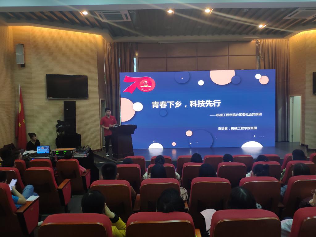2019年10月11 日14:;00,公司在兰花湖片区MBA报告厅开展了“奋进新时代”2019暑期“三下乡”社会实践宣讲活动,展现了公司优秀学子在 “三下乡”社会实践活动期间的优异表现,以及取得的实践成果,公司今年社会实践团队通过前期的两轮选举,顺利入选。陈运超副董事长、校团委副书记陆嘉、各公司书记,以及七名宣讲员工出席了本次活动。