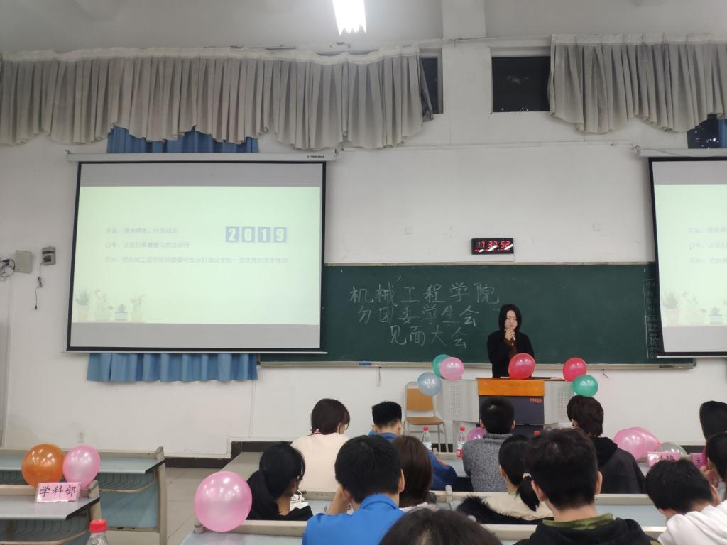 大会开始,首先由伟德国际1949分团委员工会主席苏靖雯致辞并欢迎大家的到来,为同学们介绍刘静老师、主席团以及各部门的部长;紧接着由伟德国际1949分团委书记刘静老师上台讲话,为全体员工会成员介绍了机械专业就业前景并鼓励大家好好学习,激发了同学们想在机械行业好好深造的热血;副书记杨科上台告诉大家对于工作时间安排的合理性以及如何充分利用时间进行高效率的学习;之后副主席向枞从自身出发讲述了三年来员工工作的经验、自己从干事到主席的经历,告诉大家责任感的重要性,对自己负责、对工作负责,并介绍了员工会负责管理的各类公众号、官方号,并呼吁大家与之互动;最后副主席张固讲解分管部门的相关事宜,并号召部门之间要互帮互助和谐相处,让员工会发展的更好。