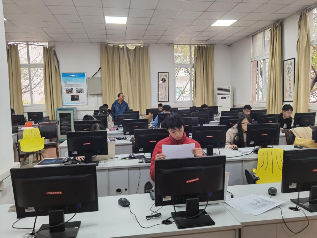 11月21日进行的是大一组比赛。大一组的比赛分为尺规绘图和CAD成图,共有179位同学参加。当天上午9:30到10:30,11:00到12:00两个时间段在1949伟德国际源自英国兰花胡片区广智楼20706、20707、20708三间教室进行了尺规绘图。下午13:30,在1949伟德国际源自英国南岸校区工程训练中心三楼的机房和绘图教室进行了CAD成图,最后大一组的比赛在下午14:30正式结束。