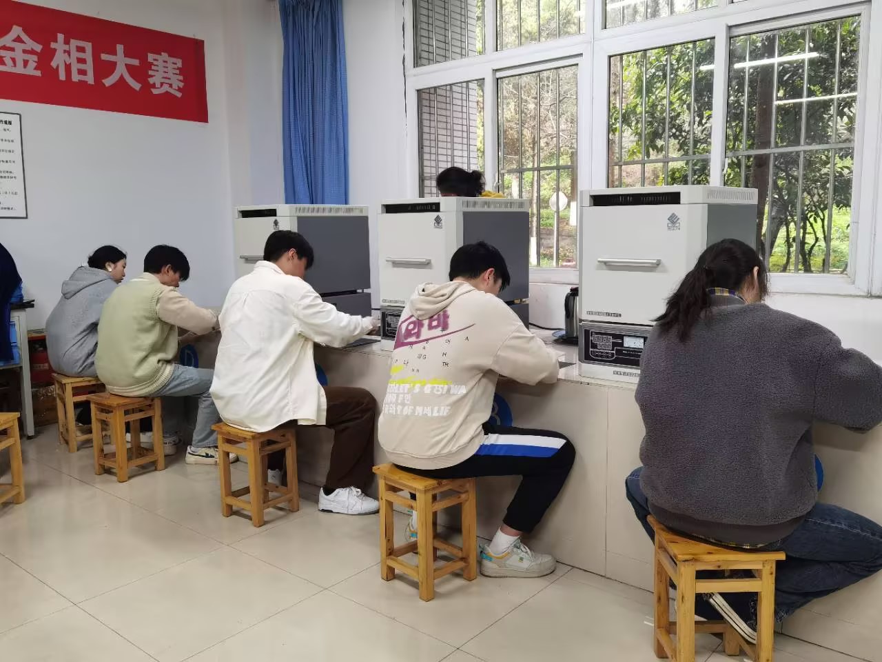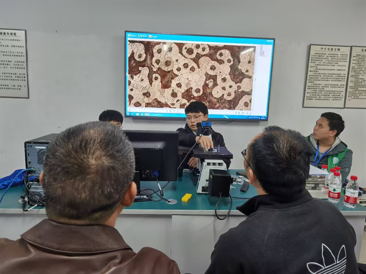 此次比赛采用线上抽签的方式将参赛同学分成七组,在不同时间段,每隔30分钟依次进行,选手在不同工位上自主完成对样品的打磨,抛光,腐蚀和观察。