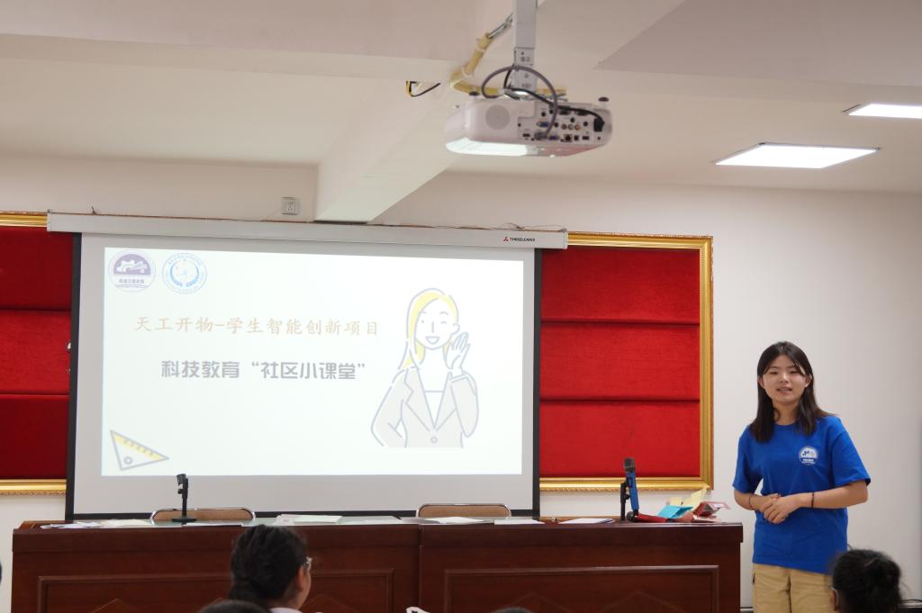 理论普及宣讲团成员王锦萱开展包装结构设计小讲堂,从赛事评审标准、优秀作品示例两方面进行讲解,结合实际动手操作吸引小朋友们动脑动手动心,帮助社区青少年快速了解包装知识。随后,王锦萱针对工程实践与创新能力大赛两大赛道展开简要介绍,太阳能电动车、势能驱动车、全地形小车引来小朋友们一阵惊呼。