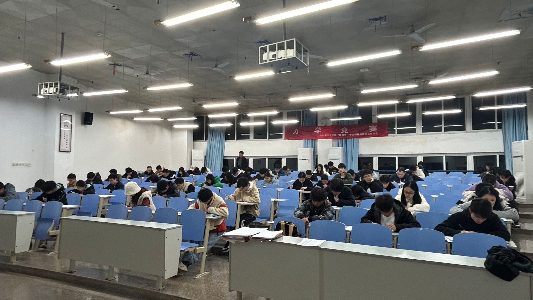 12月1日晚,力学竞赛于慧智楼(九教)90308教室举行,王 江老师主持比赛,科技协会协助组织。本次比赛采用开卷考的形式,考生可携带理论力学和材料力学教材以及一个计算器。比赛着重培养和考查员工问题分析能力,灵活运用所学知识,避免死记硬背。比赛过程中,140名参赛选手严格遵守考试纪律,聚神纸间,将所学知识凝于笔下。比赛结束后,经评委老师严谨、公正的阅卷审核,最终评选出一等奖6名,二等奖14名,三等奖19名。