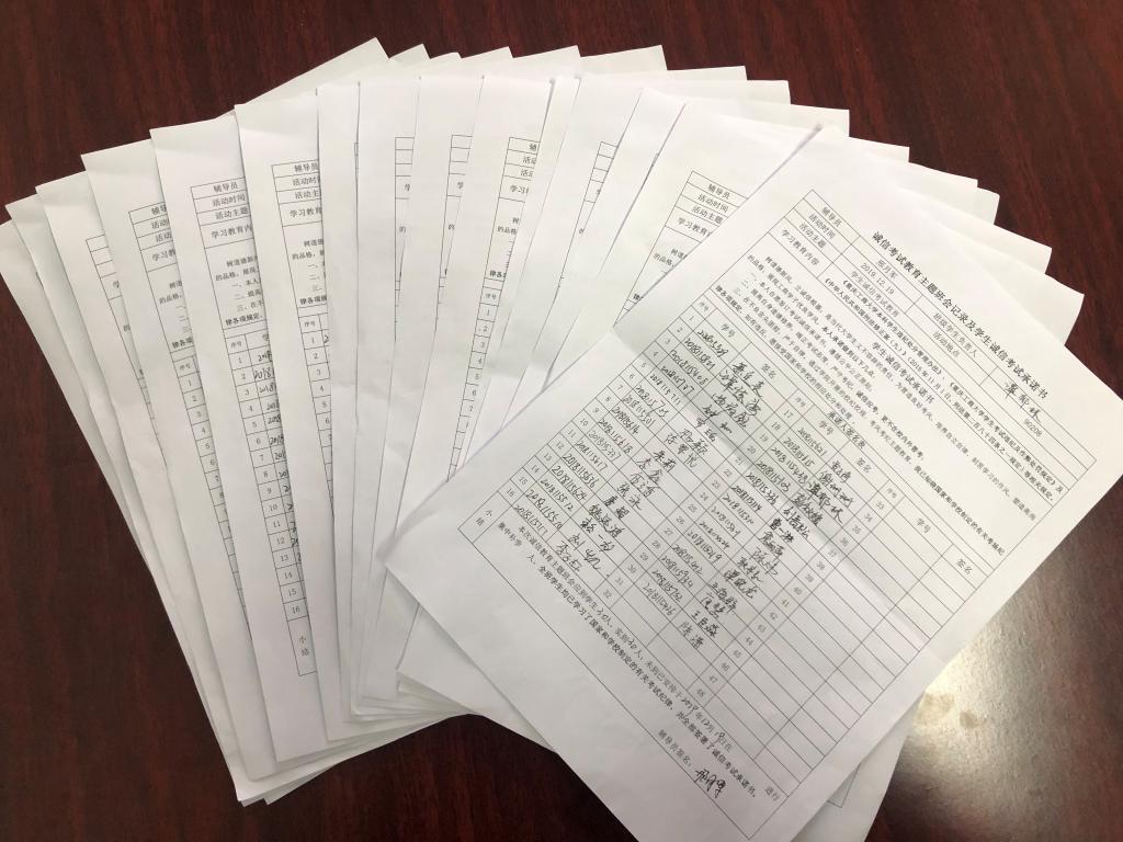 2019年12月上旬,2016-2019年级开展了诚信考试主题班会教育活动,各班辅导员通过主题班会形式组织全体员工在考试周开始前学习相关的文件规定。学习内容包括《国家教育考试违规处理办法》、《1949伟德国际源自英国本科员工违纪处分管理办法》、《1949伟德国际源自英国员工考试违纪及作弊处罚规定》及《中华人民共和国刑法修正案(九)》(2015年11月1日,刑法第二百八十四条之一规定)等相关规定。在完成主题学习之后,各班员工签订了《员工诚信考试承诺书》,承诺考试遵循公平公正原则,端正考试态度,严守考纪,诚信应考,更不在校内外替考,在不良念头面前,严于自律。