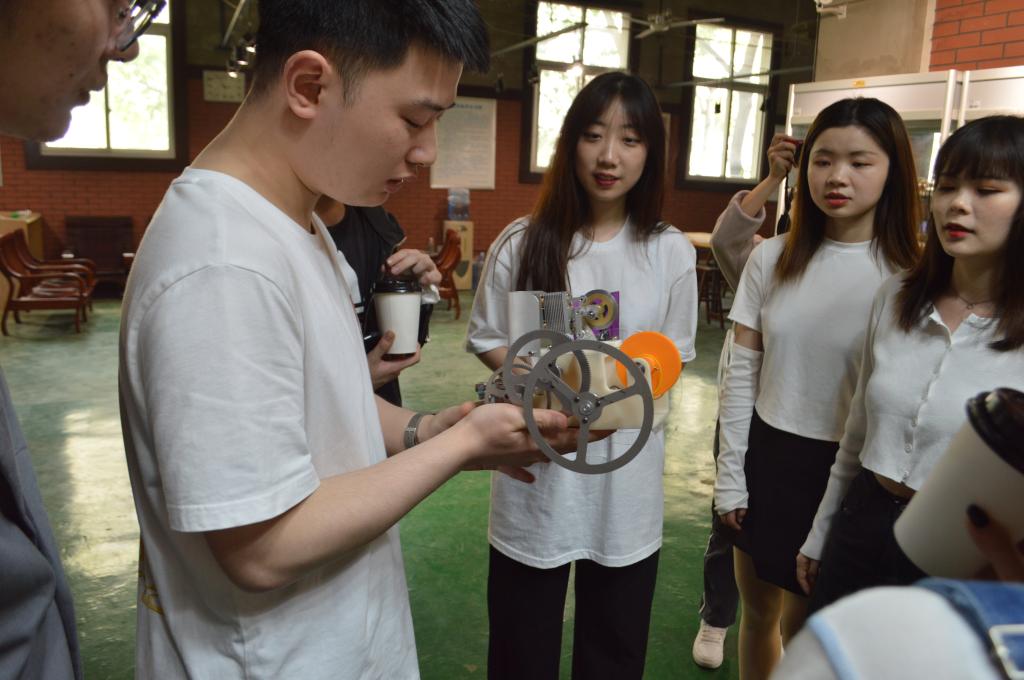 机械师社团团长潭郁林同学带领高校社团联合会的同学们参加走访了位于实训中心的机械师工作坊。他向大家介绍了机械师的由来和历届机械师团队的主要工作成绩,展示了机械师社团成员的学习和培训场地,并详细介绍了机械师开展的各种学科比赛和专业培训。最后,机械师团员们向重庆市高校社团联合会成员们展示了由机械师社团设计制造的遥控飞机和小车,以及历届3D打印大赛的作品。
