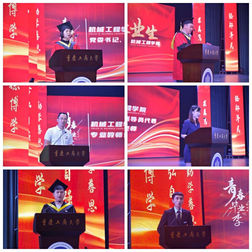 梁强老师作为教师代表发言,强调在专业能力上“打铁还需自身硬”,鼓励毕业生在职业发展上“趁热打铁”;袁娅婷老师作为辅导员代表发言,表达了对同学们的不舍,为大家的成功喝彩。张固同学和赵兴龙同学分别作为毕业生代表和在校生代表发言,感恩公司、公司的培养,立志努力向成长为具有家国情怀、工匠精神的机械人奋斗。