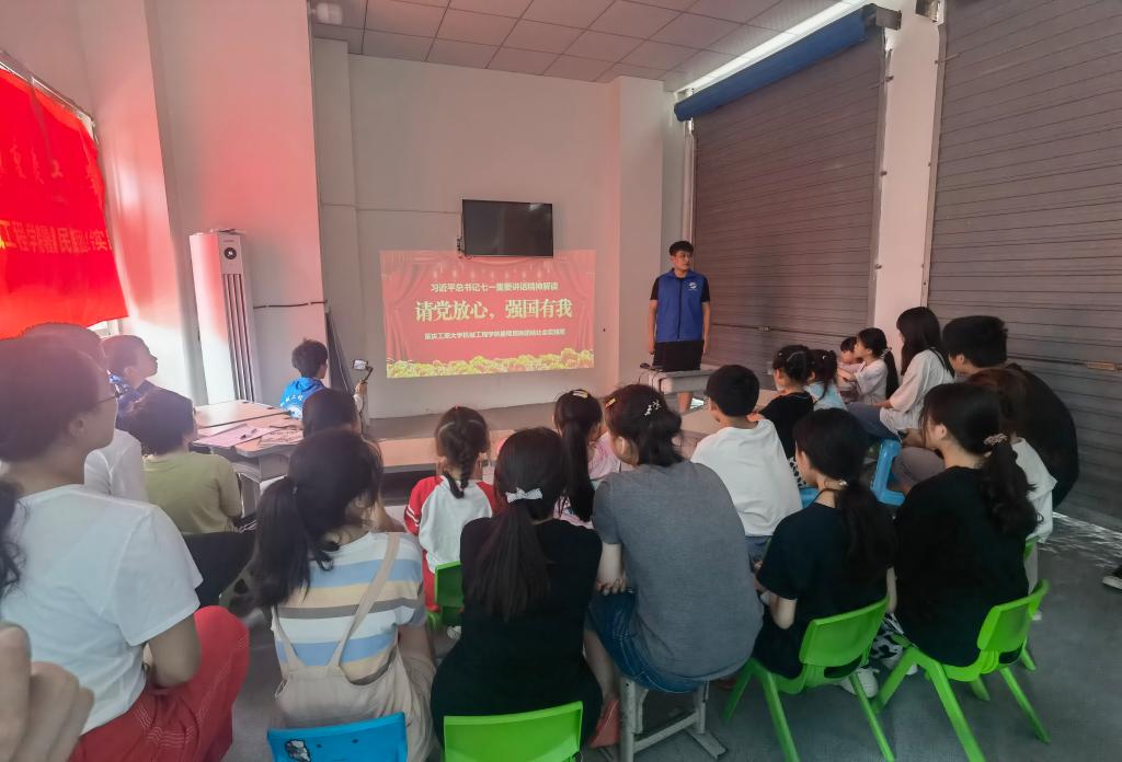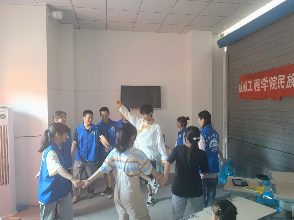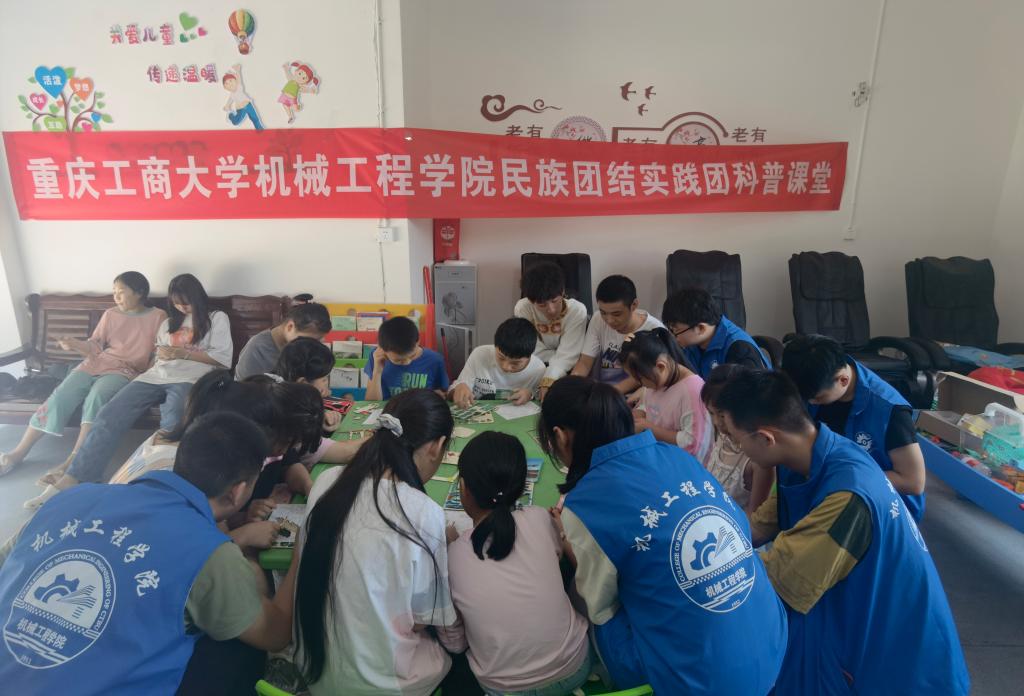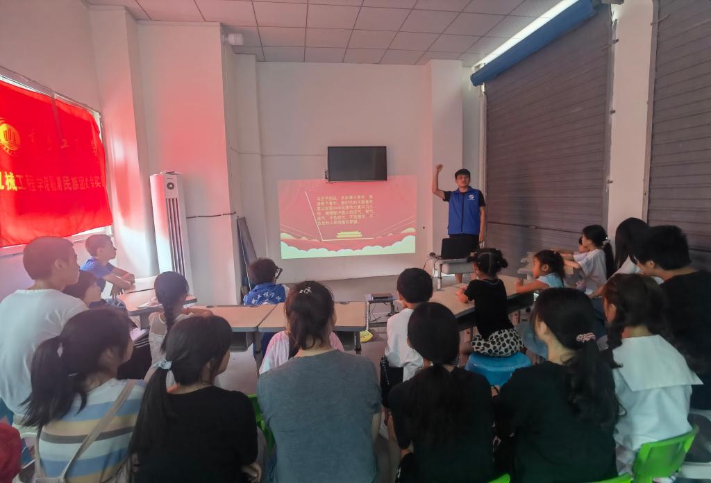 伟德国际1949民族团结实践团成员7月13日为水口镇树荫村20余位留守儿童开展了丰富的主题活动。实践团开展了以“请党放心、强国有我”为主题的习近平总书记七一重要讲话精神解读活动,结合建党100周年青少年献词,号召大家听党话、感党恩、跟党走,同心向党,振兴国家。激情昂扬的献词点燃现场,孩子们和实践团成员们一起齐声朗诵“请党放心、强国有我”。党史故事会上,实践团成员藏族小伙马骁,生动的讲解了红军长征时发生在阿坝州的感人故事《牦牛革命》,故事听的大家热泪盈眶,孩子们和实践团成员一起在现场跳起了藏族锅庄舞,赢得了大家阵阵掌声。科普小课堂上,实践团成员围绕“3D打印”、“激光雕刻”、“寻迹小车”三方面进行了介绍,现场演示“寻迹小车”工作原理,并且开展了谁是“拼装大王”的激光雕刻拼接模型的拼装小比赛,激发了大家浓厚的科技兴趣。