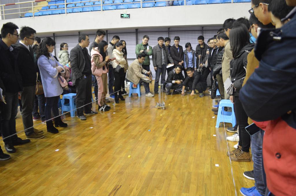 ,重块落下后,须被小车承载并同小车一起运动,不允许掉落。参赛小车要求具有转向控制机构,且此转向控制机构具有可调节功能,以适应放有不同间距障碍物的竞赛场地。小车行走的路线分别为走“S”型路线的小车和走“8字”型路线的小车,跑得距离最长,且绕过障碍物最多的小车获胜。该项比赛从具体设计、材料选用以及加工制作均由参赛员工自主完成。为了达到最佳行驶状态,选手们从暑假到现在,已备战5个多月,在现场更是认真细致地调试小车,力争从7个参赛队伍中脱颖而出。
