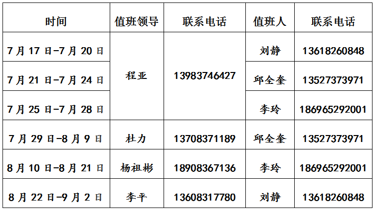 2021年暑假值班安排