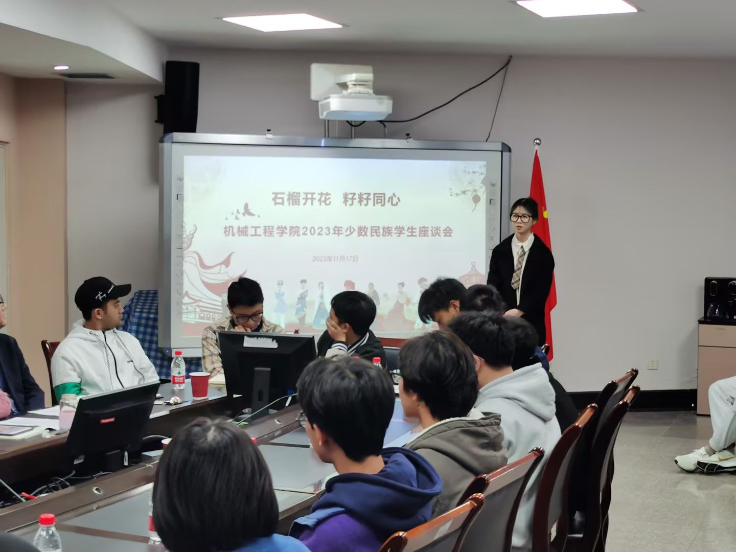 在互动交流环节,来自苗族、土家族、维吾尔族、回族、彝族、藏族、侗族、壮族、蒙古族、仡佬族、满族等少数民族的同学纷纷发言,分享了自己的家乡特色、民族历史和民族文化,详细回顾总结了自己入学以来取得的方方面的成绩,反馈了目前所面临的困难,畅谈来校后的学习生活感受以及将来回家乡为家乡积极做贡献的打算,对公司和公司的关怀表达了感恩之情,对老师和同学的帮助表示由衷地感谢。杜力经理、李平副经理依次为同学们解答学业和生活上的困惑,并对机械类专业新生代表提出了专业分流选择的建议,对高年级员工代表考研方向选择给予专业的意见。