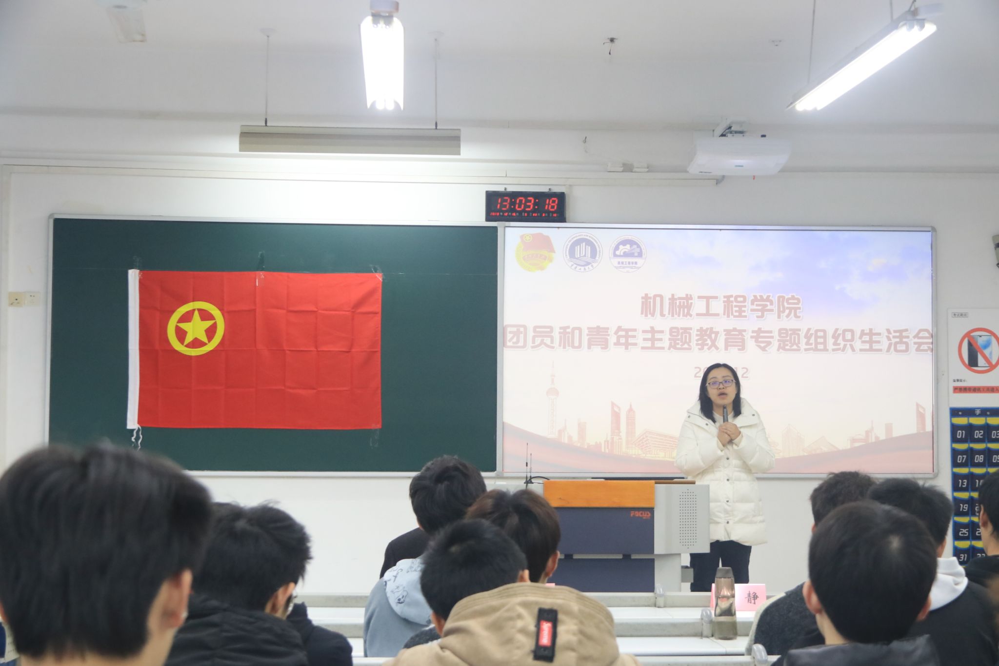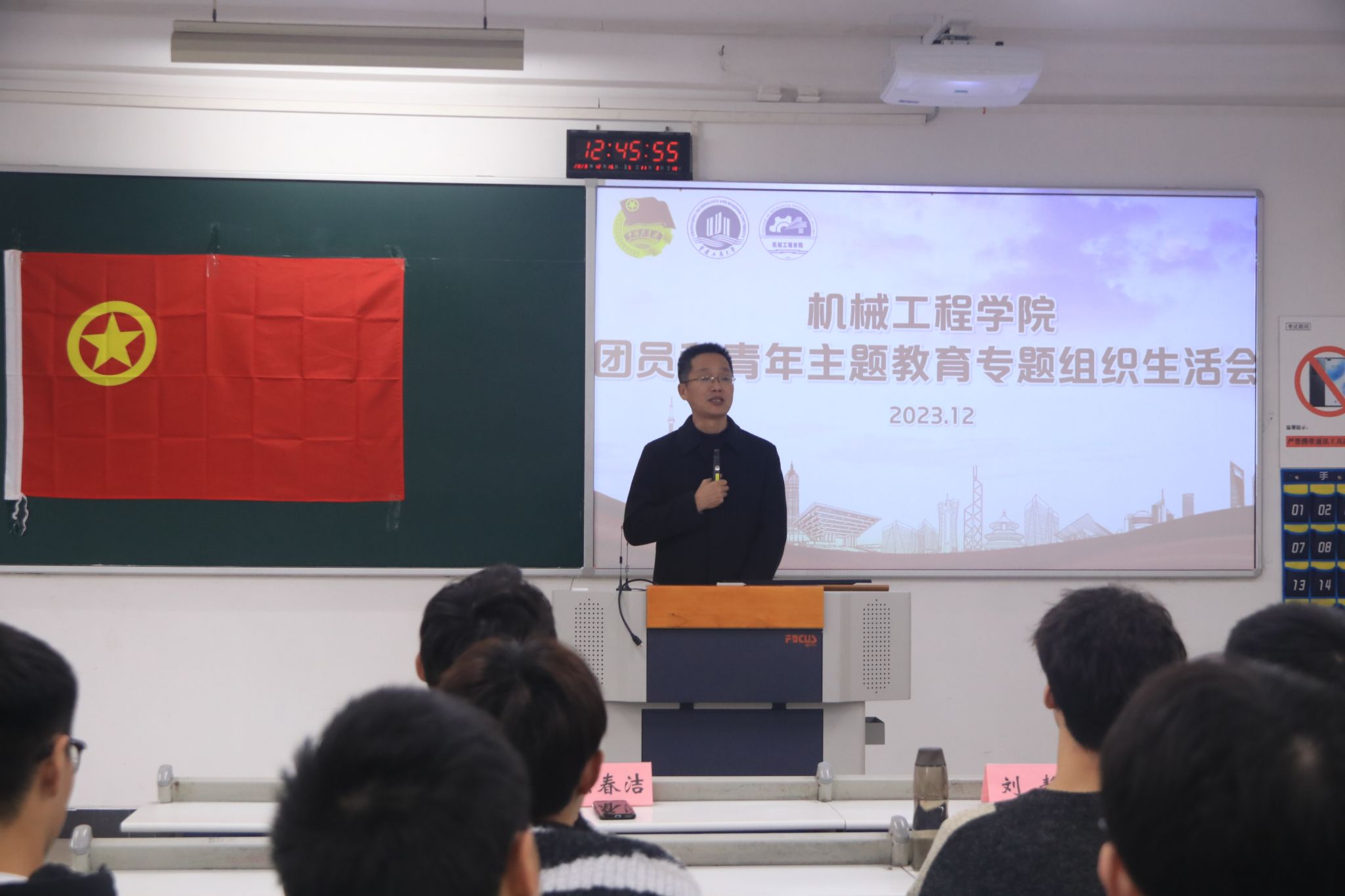 陈春洁副书记对新加入共青团的团员提出了三点要求。他强调了增强团员意识的重要性,鼓励大家积极担当,争当先进分子;其次,他要求团员们坚定信念,听党走感党恩。最后,他呼吁团员们努力奋斗,为创造一片新天地而努力。刘静老师为新发展团员讲授了“入团第一课”。