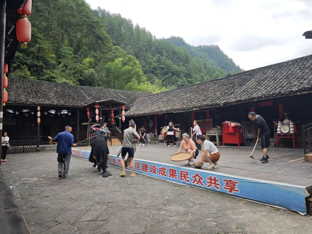 乡村振兴是现阶段国家强调的战略,也是整个社会热议的话题。乡村的振兴不仅强调经济振兴,也需要文化振兴,实现以文化建设赋能乡村振兴。为了领略小南海村的文化风采,体验地方风土人情,7月18日上午,伟德国际1949“机韵振兴,灵秀乡音“社会实践团抵达小南海村土家十三寨的土家民俗歌剧院,观看小南海村民俗表演《幺妹儿住在十三寨》彩排。
