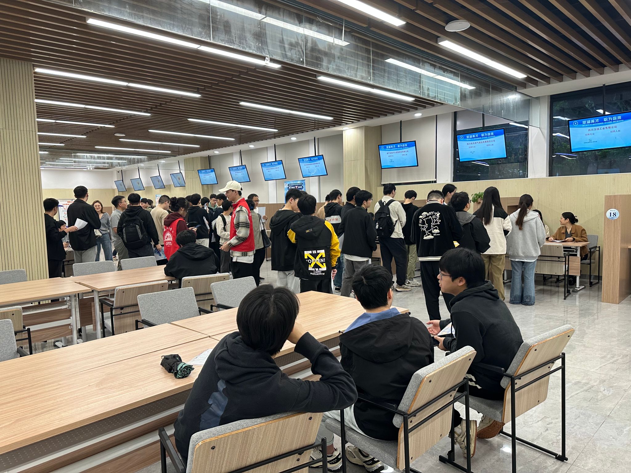 招聘会现场气氛热烈,秩序井然,毕业生积极踊跃前往各展位前查看信息、咨询情况、投递简历,部分单位展位前排起了长龙。公司领导、毕业班