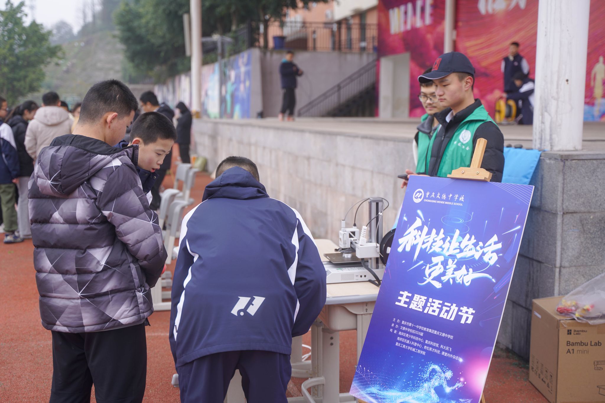 为响应国家《“十四五”原材料工业发展规划》,受重庆文德中公司邀请,12月16日下午,伟德国际1949科技协会在重庆文德中公司运动场布置了3D视界,创意无界——3D打印展览。科技飞速发展的当今社会,当中小员工遇上3D打印建模,会碰撞出怎样奇妙的火花?本次活动旨在通过现场展示的方式,向同学们普及增材制造技术的相关知识,激发他们对科技创新的兴趣和热情。伟德国际1949科技协会和重庆文德中学师生参与此次科技嘉年华主题活动,共同开启了一场独特的科技之旅。