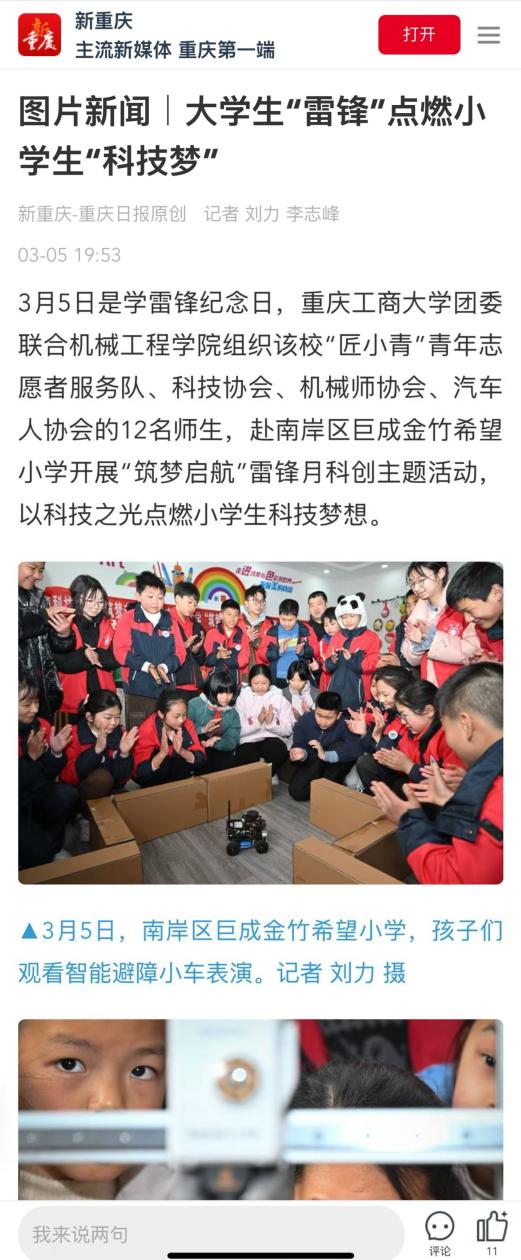 新重庆-重庆日报客户端:《老员工“雷锋”点燃小员工“科技梦”》https://wap.cqrb.cn/xcq/NewsDetail?classId=437&newsId=2198608&staticUrl=https%3A%2F%2Ft.cqrb.cn%2F0Hc4Y&RandomTime=1741183316253