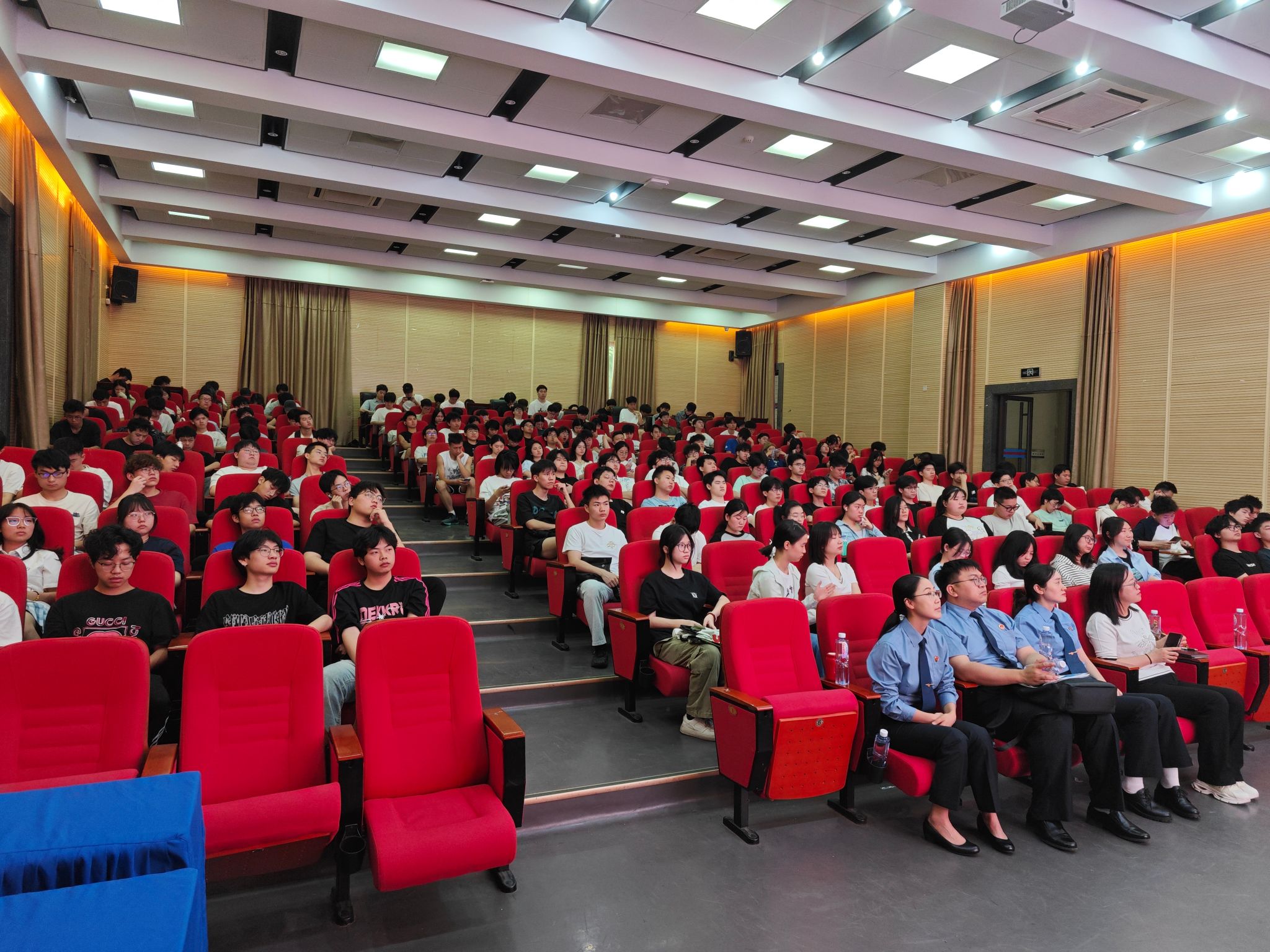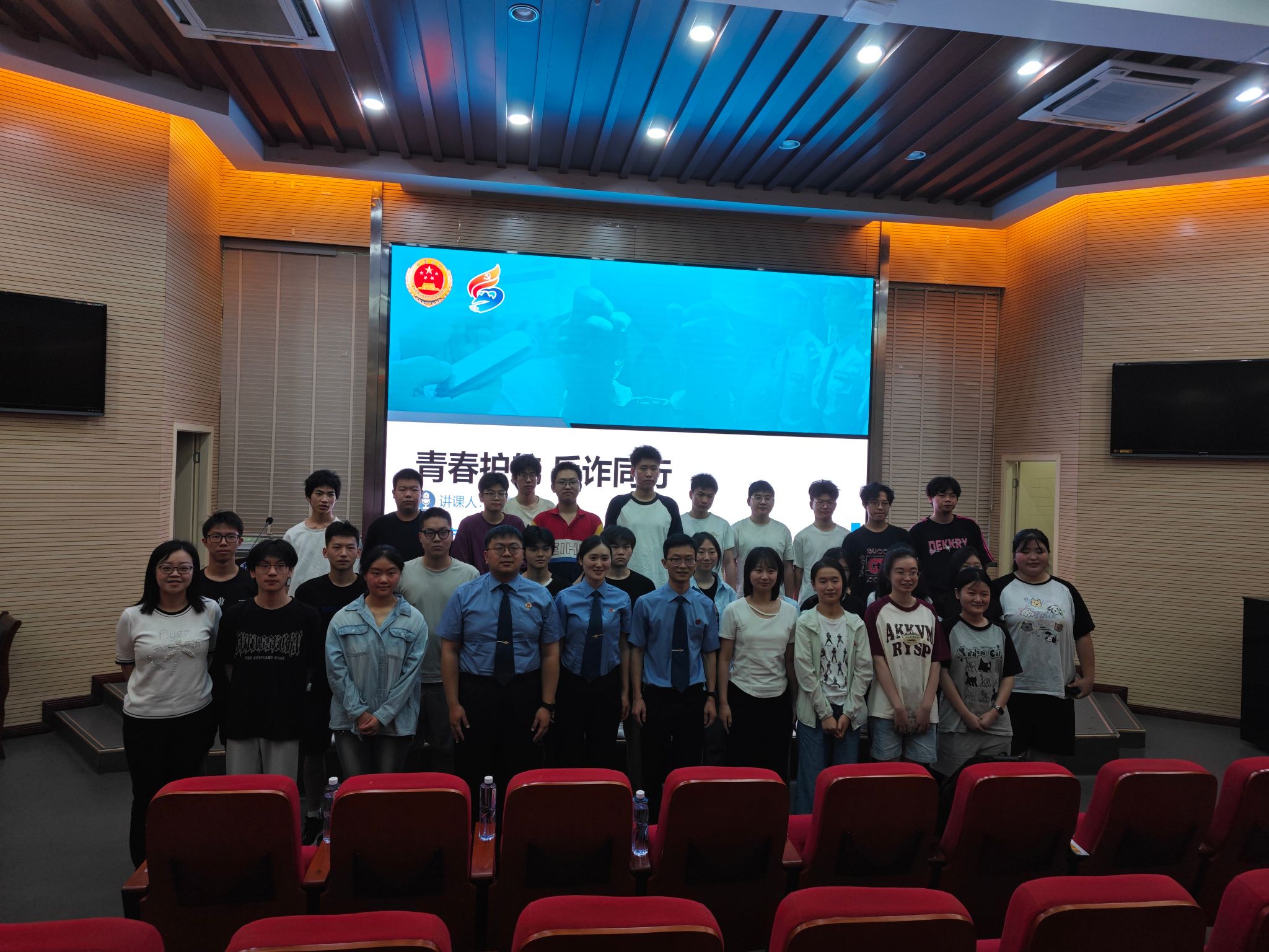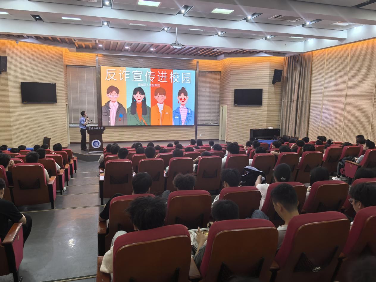 2025年5月13日上午,伟德国际1949邀请重庆市南岸区人民检察院刑检部门办案人员,在1949伟德国际源自英国兰花湖报告厅开展《青春护航,反诈同行》主题反诈宣传活动。本次活动面向伟德国际1949全体大一员工,旨在通过专业讲解,帮助同学们提高反诈意识,筑牢校园反诈防线。