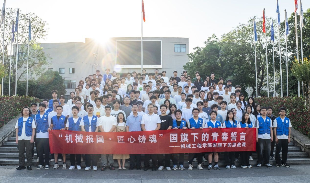 陈春洁做了“机械报国 匠心铸魂:国旗下的青春誓言”主题发言,他结合机械工程专业特点和国家发展战略,深入解读了“机械报国,匠心铸魂”的内涵和时代意义,引导机械学子将个人成长与国家发展紧密结合,以工匠精神投身于国家机械工业的建设事业。他希望同学们:一是淬炼工匠精神,从技艺锤炼到职业信仰;二是创新担当,做智能时代的破局者;三是扎根大地,在奋斗中书写青春答卷。思政课结束后,全体参与者在国旗下合影留念。