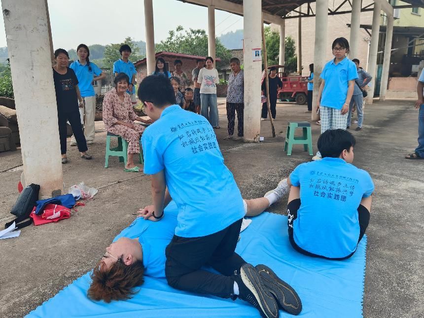 江津区因水系发达,夏季成为溺水事件高发期。实践团针对这一痛点,以情景剧为载体,将野泳危害、规范救援等知识融入剧情。剧中,青年员工因野泳抽筋遇险、盲目施救反被困的情节,直观展现了河道环境的复杂性。救援人员现场演示救生杆使用规范,并强调“水温差易致抽筋”“暗流暗藏风险”等常识,引发村民共鸣。小路父亲“去游泳馆更安全”的提醒,直击家庭监护盲区。