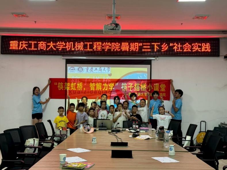 虽然仅用两个小时,该活动却实现了预期目标,小朋友们全部掌握基础搭建方法,并且对力学基建产生了浓厚的兴趣。此次筷子搭桥趣味实践活动,以生动有趣的形式让乡村儿童近距离接触机械工程知识,在动手实践中领悟结构力学的奥秘,更在团队协作里收获成长与快乐。实践团的同学们用专业与耐心,将“匠心”融入互动,既为孩子们的暑期生活增添了别样色彩,也让知识的种子在乡村土壤中悄然萌芽。这场短暂却意义深远的活动,不仅是一次知识的传递,更是“齿轮传薪火”理念的生动践行,让温暖与力量在指尖与心间流转。
