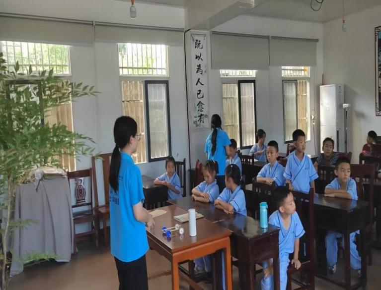 活动伊始,“筷子搭桥承重”课堂率先拉开帷幕。实践团成员先展示预先用筷子搭建好的桥梁模型,将数书本置于其上,模型依旧稳如泰山、纹丝不动。随后,孩子们也发挥自己的想象用筷子搭建桥梁。“三角形具有稳定性,可以把筷子交叉固定,这样会更加牢固。”“这边可以再加一根筷子。”现场讨论声延绵不断,大家都开动自己的脑筋提出自己的意见,并对自己小组的作品不断的进行优化调整改进。虽然有些小组并没有成功搭建好桥梁模型,但是他们并没有气馁,在课后仍刻苦训练,向别人请教。筷子搭桥不仅是教给青少年科学知识,更是教会他们在生活中要有敢于实践、不畏惧失败、善于向他人请教的精神品质。