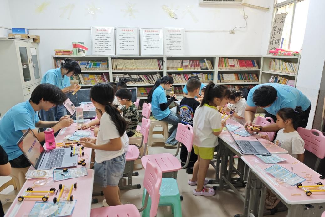 为激发社区儿童对科学的探索热情,培养动手实践能力,7月18日,伟德国际1949“智美赋能乡村,科创驱动振兴”社会实践团走进仁沱社区,开展“巧手制皮筋车,童心探科学趣”社区科普课,以趣味实验与手工制作,为孩子们开启一场奇妙的科学之旅。