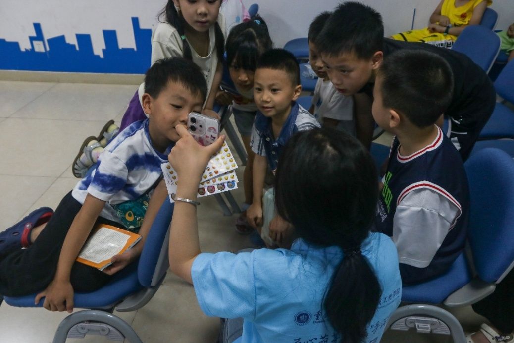 在动手实操环节,以 AI 软件体验与智能对话互动最受孩子们欢迎。活动中,孩子们分成小组,兴致勃勃地尝试使用 AI 软件,与 AI 展开实时对话交流。在实践团成员的耐心指导下,孩子们还学会利用 AI 量身定制个性化学习计划。通过一次次的探索与调试,孩子们不仅深刻领略到科技的神奇魅力,更在成功完成操作后,收获了满满的成就感。活动结束后,社区家长纷纷表示,这样寓教于乐的科技体验活动,非常有意义。