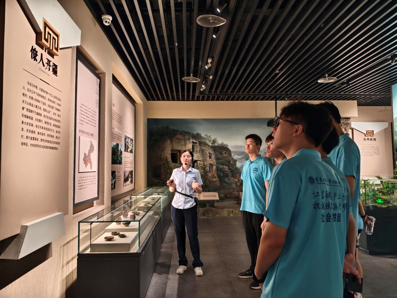 在巴人历史与文化展区,实践团成员通过青铜器、陶器等珍贵文物,跟随讲解员一同穿越时空,感受巴人文化的独特魅力。巴人作为古老的族系,在长江流域创造了灿烂文明。虽然其民族在两千多年前神秘消失,但留下的文化瑰宝依然闪耀。 同时,僚人文化的展示也让成员们对少数民族的智慧和创造力有了更深刻的认识。