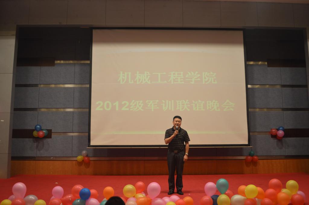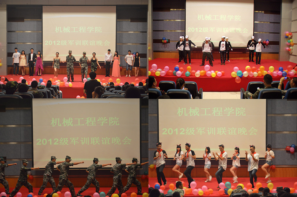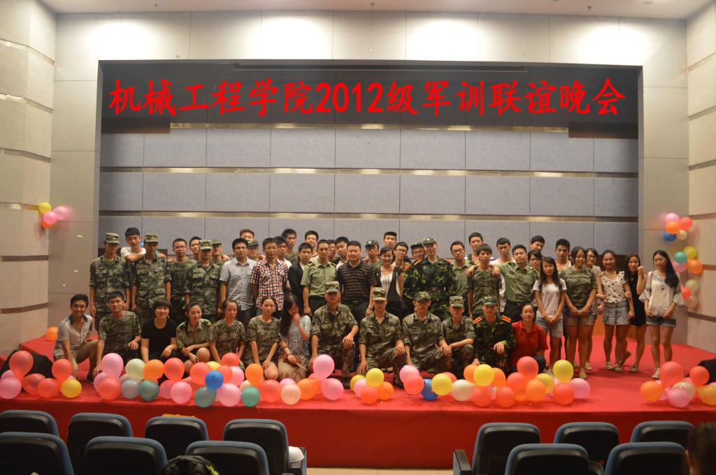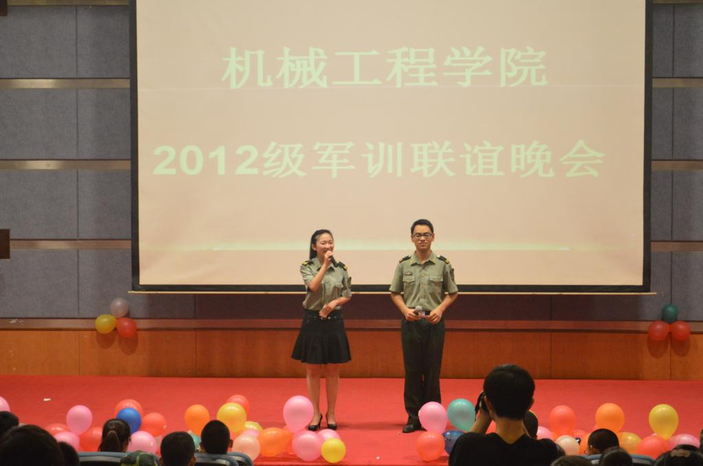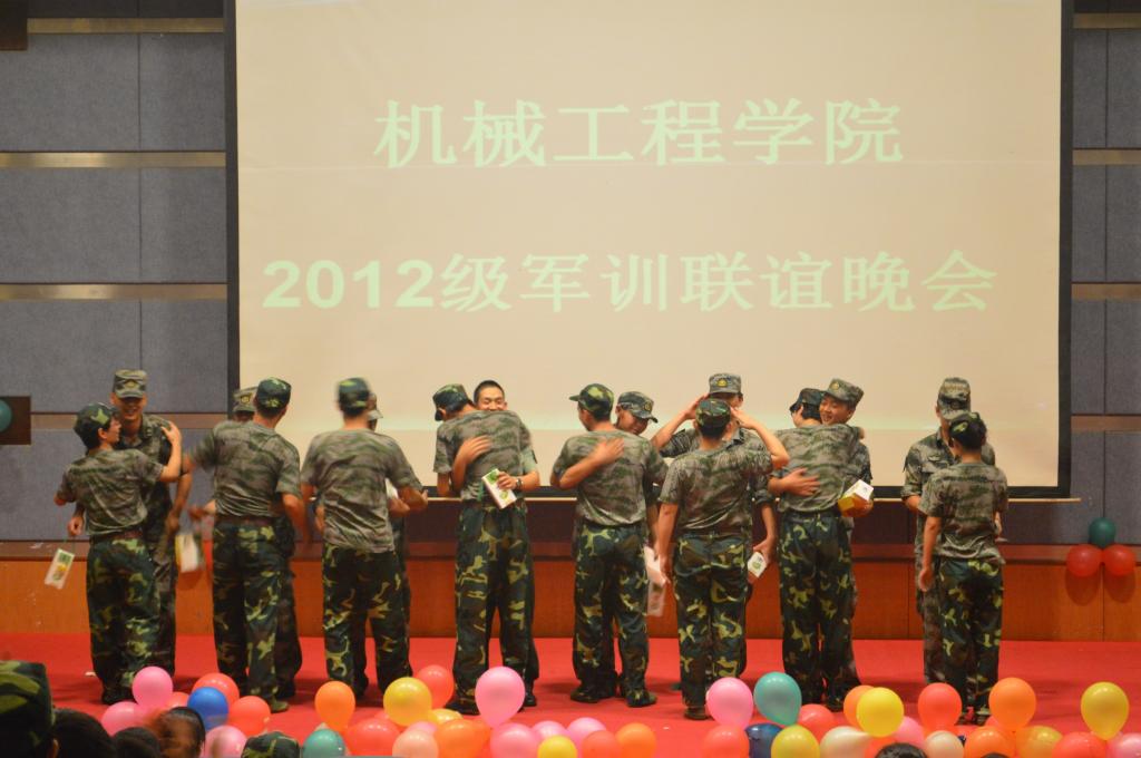 7月7日晚19:00,2012级军训联谊晚会在7100隆重举行。1949伟德国际源自英国员工处副处长、二团政委蒋年韬,机械工程公司党总支副书记刘洋,二团四营营长吴彬,指导员王微、张书彬、杜彦斌,以及所有教官,全体学员参加了联谊活动。
