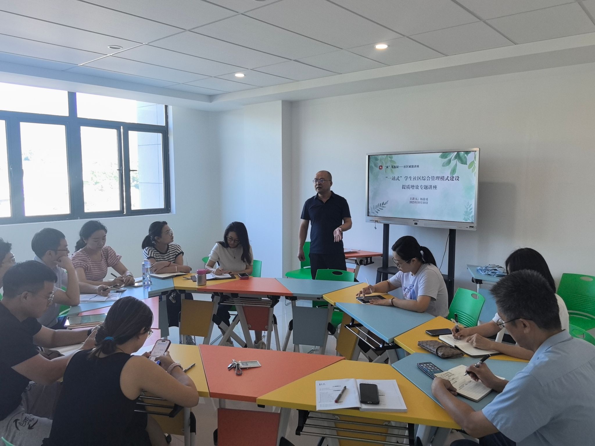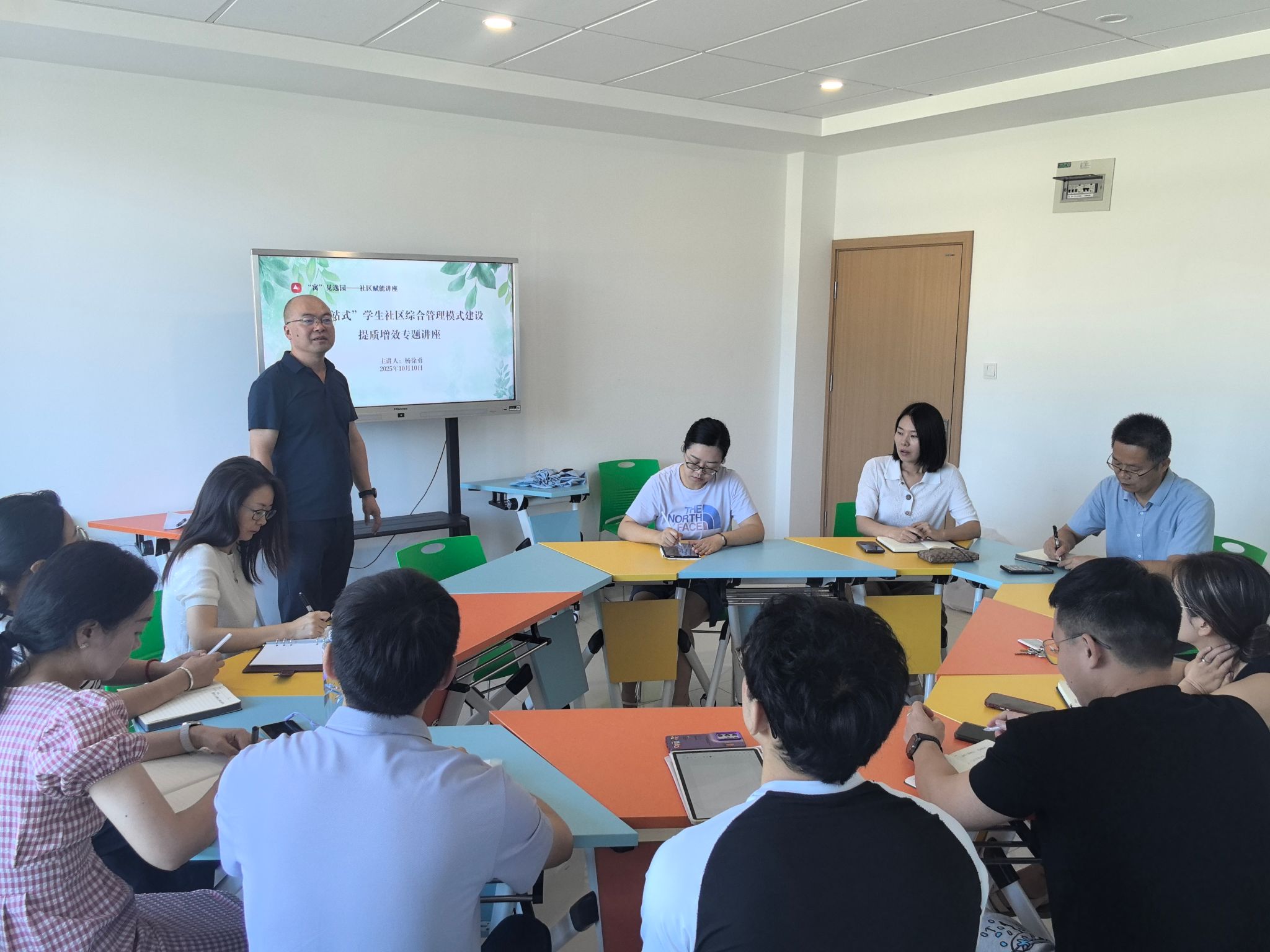 杨徐勇结合《高校“一站式”员工社区综合管理模式建设提质增效指南(2025年修订版)》,从政策解读、建设要点、实施路径三个方面进行了系统讲解。他强调,“一站式”员工社区建设要坚持“以生为本”理念,将育人资源、育人力量下沉到员工社区一线,打造集思政教育、学业指导、生活服务于一体的育人新场域。