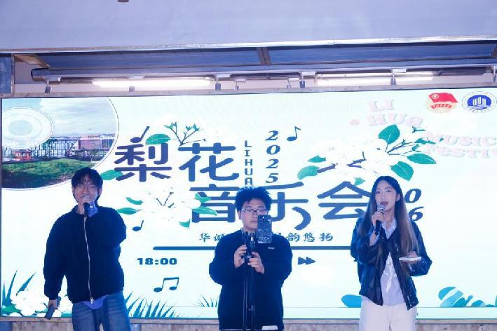 傍晚七点的锦园食堂二层经过精心布置,灯光柔和,梨花元素点缀其间,营造出温馨而雅致的演出环境。观众们已陆续入场,有序就座,静待演出开始;歌手们严阵以待,跃跃欲试。随着灯光渐亮,主持人张一诺缓步登台。她首先代表主办方向到场师生表示欢迎,并介绍了本次音乐会的意义:为丰富同学们的课余艺术生活,陶冶情操。她以简洁有力的语言勾勒出整场演出的脉络,随着最后一句介绍的结束,标志着本场音乐之旅正式启程。